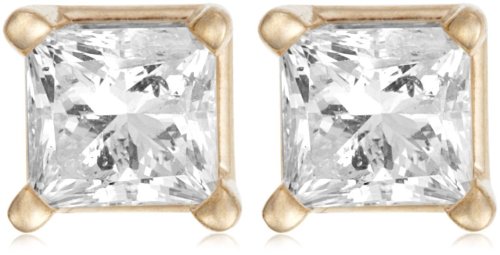 Buy Now IGI Certified 10k Yellow Gold Princess-Cut Diamond Stud Earrings (3/4 cttw, J-K Color, I2-I3 Clarity)